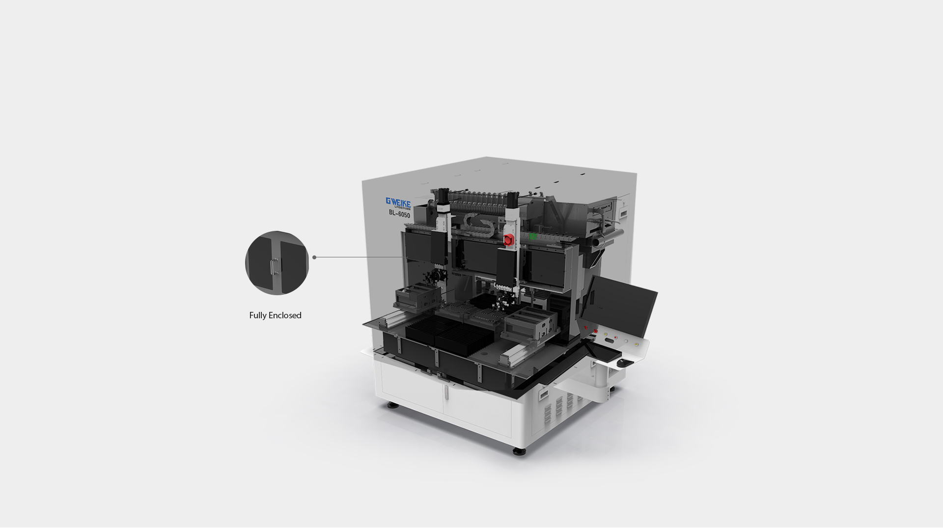 CCD intelligent camera auto positioning function, which identifies material location, identifies round shape,Cruciform shape and irregular MARK point precisely, improves fabrication accuracy.