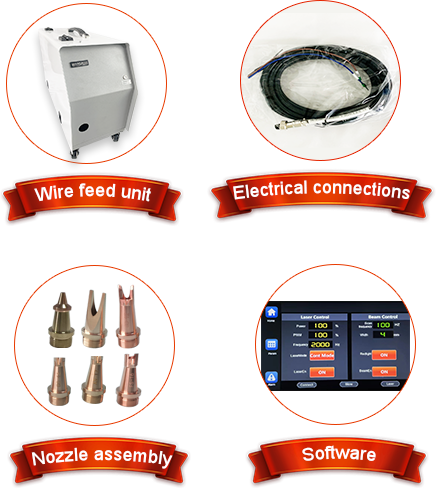 Package includes wire feed unit, electrical connections, nozzle assembly and software