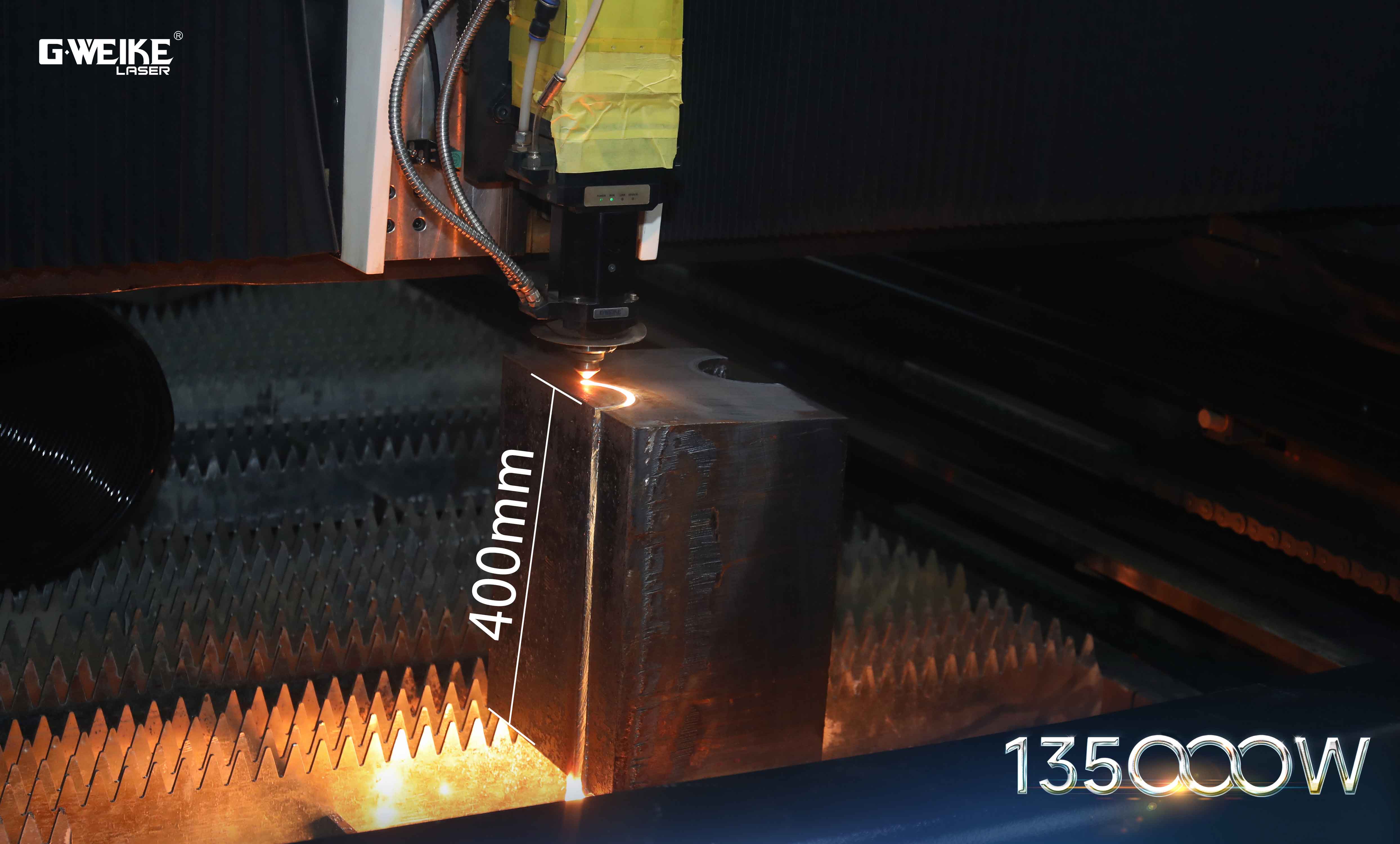 135KW ultra high power laser cutting machine is the ultra-high power practical use scenario and technical process of cooperation between Gweike Laser and BWT, launched the trans-era significance of the laser, is currently the world's highest power output industrial laser. Its launch is a breakthrough in the global industrial laser field. 135KW laser can process thicker materials. Solve the processing problems of 400mm and above ultra-thick plates, and bring new changes to the transformation and upgrading industries such as steel structure, shipbuilding and machinery manufacturing.