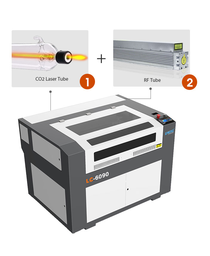 Optional 40-100W CO2 laser tube, capable of cutting thicker materials,cheaper than the RF tube.Using Yongli laser tube, its photoelectric conversion efficiency is high, the laser output power density is high, the beam is concentrated, and the spot is uniform. The engraving/cutting speed is fast and the engraving line is deep and narrow with high resolution and clear characters. The work life of laser tube is long and the fault rate is low.