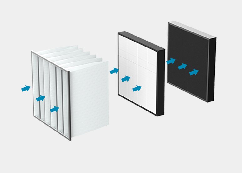Three-stage filtration.
