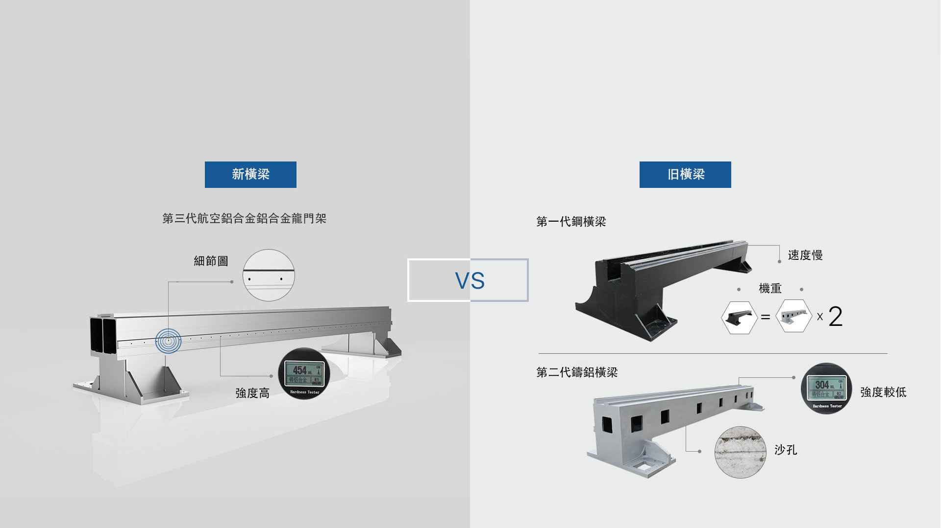 採用航天標準製造航空鋁,用4300噸壓力機擠壓成型。時效處理後硬度可達到T6,是所有橫梁硬度最強的——航空鋁具有較好的韌性,其重量輕,抗腐蝕,抗氧化,密度小,大幅提高加工速度