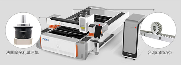 采用日本安川电机、台湾上银齿条、法国摩多利减速器。机床的定位精度为0.02