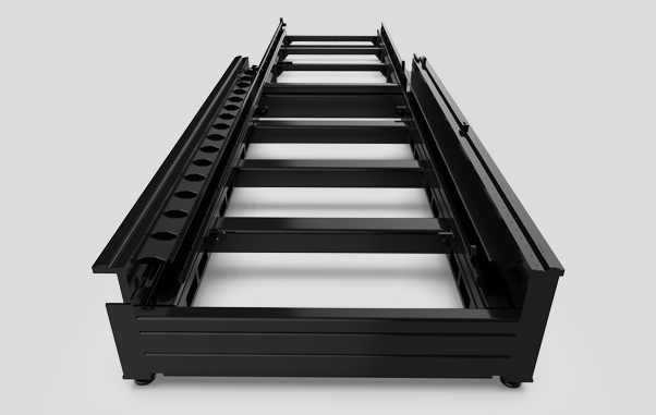 床身内部结构采用飞机金属蜂窝式结构,由多段矩形管焊接而成,管内部设置加强筋, 增加床身强度和抗拉性,增加导轨面的抗拉性和稳定性,有效避免床身变形。