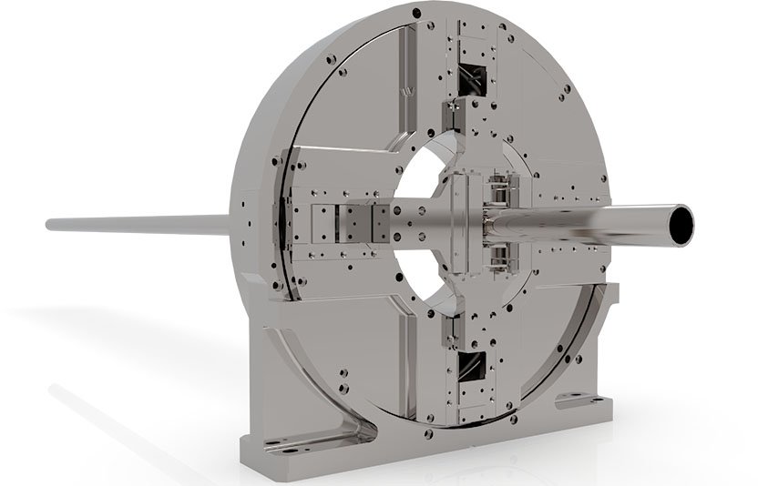 前后采用气动卡盘夹持设计,自动调整中心,操作简单,对角线调节范围20~300mm。 可加工超大直径管材,卡盘旋转速度高,能提升加工效率。