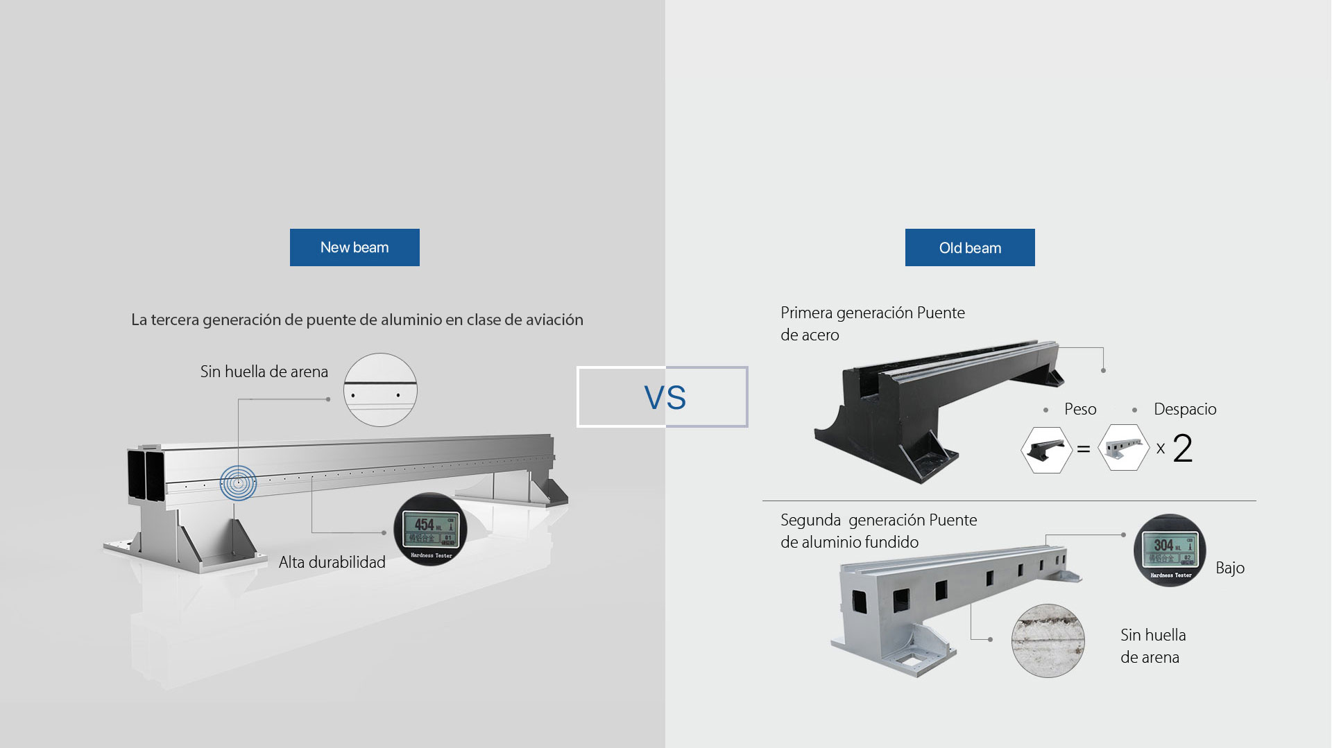 La placa soldada al banco de trabajo de alta resistencia garantiza que no haya deformación en 20 años, adecuado para un dispositivo láser de una potencia de diez mil vatios. Este aumento de peso aumenta la velocidad de corte de la máquina.