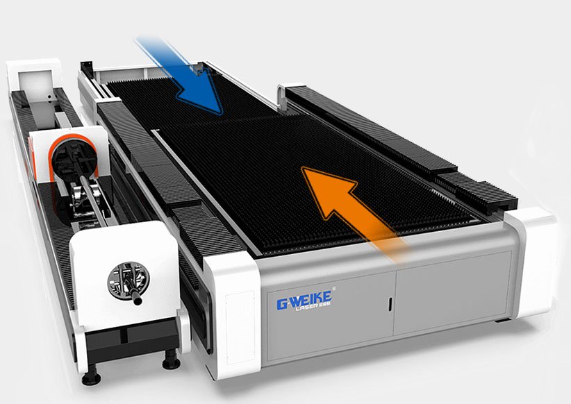 Para reduzir o dano à plataforma de trabalho durante o processamento do laser, a Gweike reformou a plataforma nova e adicionou quatro suportes. aumentando a vida útil. A cama mais pesada é mais apropriado para o laser da alta potência, especialmente para o laser da fibra da ultra potência. como a potência mais de 12000W