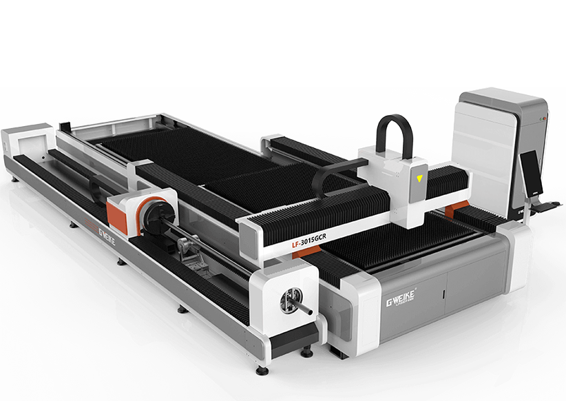 A máquina de corte a laser da fibra 3015GCR pode cortar chapas metálicas e tubos metálicos. Uma máquina, várias utilizações. A máquina pode economizar mais de 50% de espaço e aumentar a produtividade.