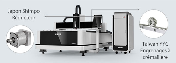 Les machines laser de G.Weike, assemblent le rack d’Atlanta Allemagne, moteur de Yaskawa Japon , le réducteur de Newcarte Allemagne, la précision de positionnement de la machine peut atteindre à 0,008 mm, l’accélération de coupe de 1,5 G. La durée de vie de la machine jusqu'à 10 ans.