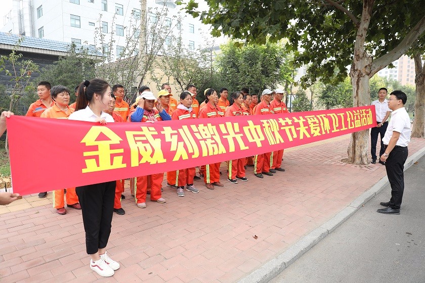 9月10日上午,济南金威刻科技发展有限公司联合济南日报开展“共建文明城 共享中秋月”送月饼献爱心活动,向环卫工赠送月饼。