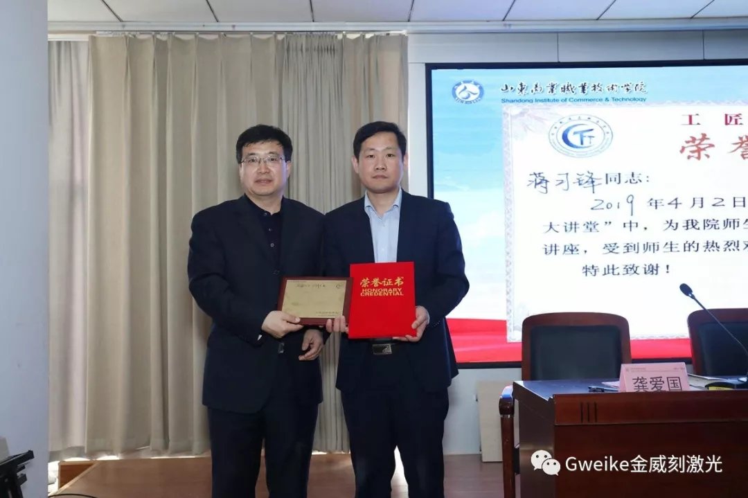 这是一次大咖与大学的碰撞这是一次匠人对匠心的解读4月2日,金威刻激光和山东商业职业技术学院举行了校企合作签约仪式。金威刻激光总经理蒋习锋作为本学期——山东商业职业技术学院智能制造与服务学