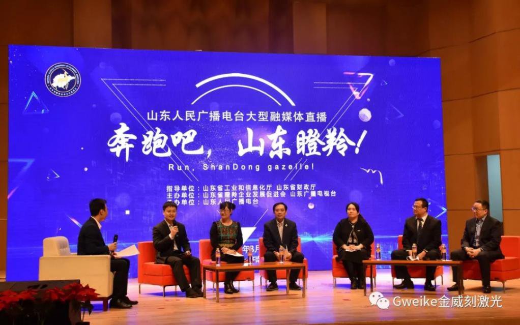 3月19日下午4点到6点,金威刻激光派出30人的团队,应邀参加山东人民广播电台承办的大型融媒体直播节目《奔跑吧,山东瞪羚!》,成为现场的焦点之一。 这档节目不仅档次极高,内容也极具权威