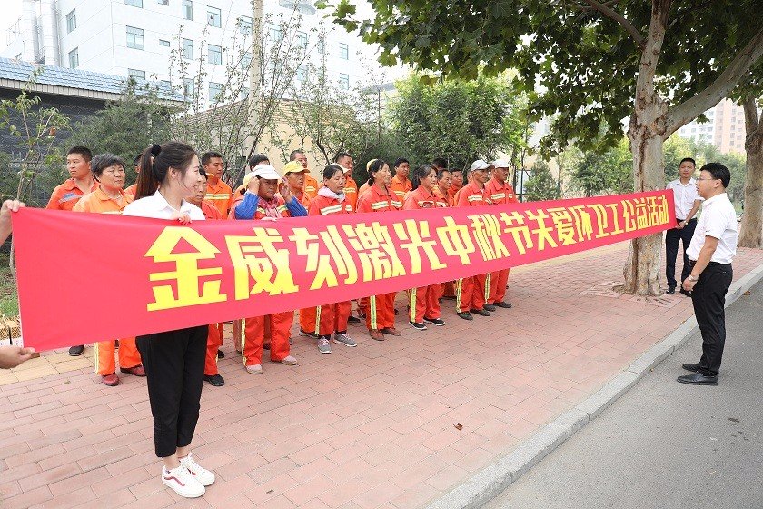 9月10日上午,济南金威刻科技发展有限公司联合济南日报开展“共建文明城 共享中秋月”送月饼献爱心活动,向环卫工赠送月饼。